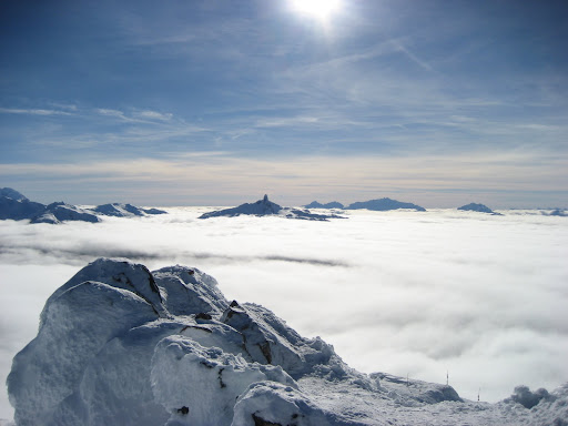 This was the view from the top of the Peak Chair on Whistler. We were above the clouds and looking off towards Black Tusk in the distance.